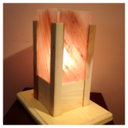 This Himalayan crystal salt  table lamp is perfect for creating great ambiance. Recognized by local media outlets  for its innovative design, its unusual shape and architecture works for the adventurous decorator. This striking table lamp features one light bulb housed in natural stone walls. These natural stones are held together by hand stained natural wood that compliments the natural beauty of the stone. When lit , these  natural salt crystals allow for a soft, warm glow. Coloration of salt crystal blocks  may vary significantly. Light bulb is not included. Available in three colors: Natural wood,Red Mahogany,Gunstock Dimentions: Front and back lenght:  About 6-7 inch Left and right side lenght: About 6-7 inch Total Height: About 7.0 inch Weight: About 4 pounds Natural Himalayan Salt Table Lamp: -Purify the air by producing negative ions -Therapeutic glow of  dark orange hues -Works like an air purifier -Beautify the home -Hand-carved Himalayan salt crystals -Base made up of wood -6.0 ft electric cord with on/off switch -Requires one candelabra base bulb (Max. 25W) -UL listed FROM SALT GRAINS TO SALT ROOMS WE GOT EVERYTHING TO MEET YOUR HIMALAYAN SALT NEEDS.  HAND WASHED AND SHINED BEFORE SHIPPING.