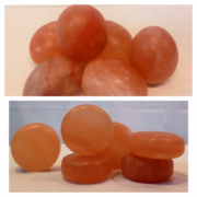84 MINERALS HIMALAYAN SALT MASSAGE STONES, HEART SHAPE, SET OF SIX. Incredible way to experience soothing hot or cold therapy. The moist heat from these natural crystals penetrate deep into your muscles providing relaxation to your mind, body, and soul. Use it warm, cold, or at ambient temprature. HIMALAYAN SALT MASSAGE STONES---. Chill them in refrigerator to reduce swelling and inflammation. You can use them at room temp as well. Get the desired temprature and apply it to the area that need some tender loving care . They are completely odorless. These natural Himalayan salt crystals that retain heat or cold longer than other materials like seeds,rice, or beans. The Natural Himalayan Salt Crystals are 100% natural and pure. FROM SALT GRAINS TO SALT ROOMS WE GOT EVERYTHING TO MEET YOUR HIMALAYAN SALT NEEDS. HAND WASHED AND SHINED BEFORE SHIPPING. Weights about 2-3 pounds combined.About 1-2 inch thick. Flat and Round Stone is about 2X2