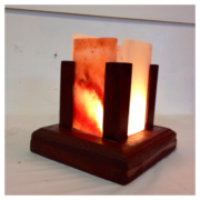 This striking table lamp features one light bulb housed in natural stone walls. These natural stones are held together by hand stained natural wood that compliments the natural beauty of the stone. When lit , these natural salt crystals allow for a soft, warm glow.