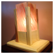 This striking table lamp features one light bulb housed in natural stone walls. These natural stones are held together by hand stained natural wood that compliments the natural beauty of the stone. When lit , these natural salt crystals allow for a soft, warm glow.
