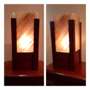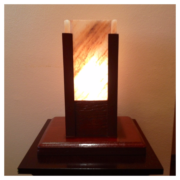 natural wood that compliments the natural beauty of the stone. When lit , these natural salt crystals allow for a soft, warm glow.