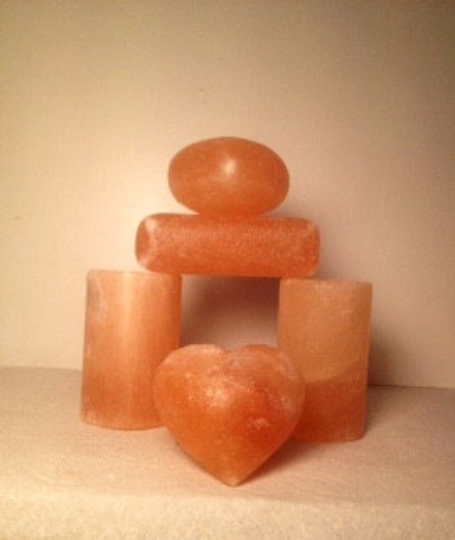 84 MINERALS HIMALAYAN SALT MASSAGE STONES, HEART SHAPE, SET OF SIX.