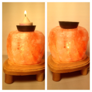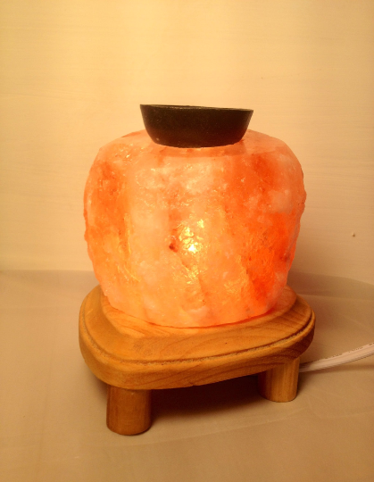 Himalayan Salt Crystal Oil Burner and Candle Holder. 3 in 1 gift. Can be used as Essential oil burner, Night lamp, or as a Candle Holder. The light source is used for dual purpose. It heats the salt to emit negative ions, which neutralize the electro-magnetic smog and harmful positive ions. Secondly it heats the essential oil containing cup that provides desired aroma. Comes with UL listed cord and bulb. Two primium quality steel cups are provided, one for oil burner and the other one for candle holder.